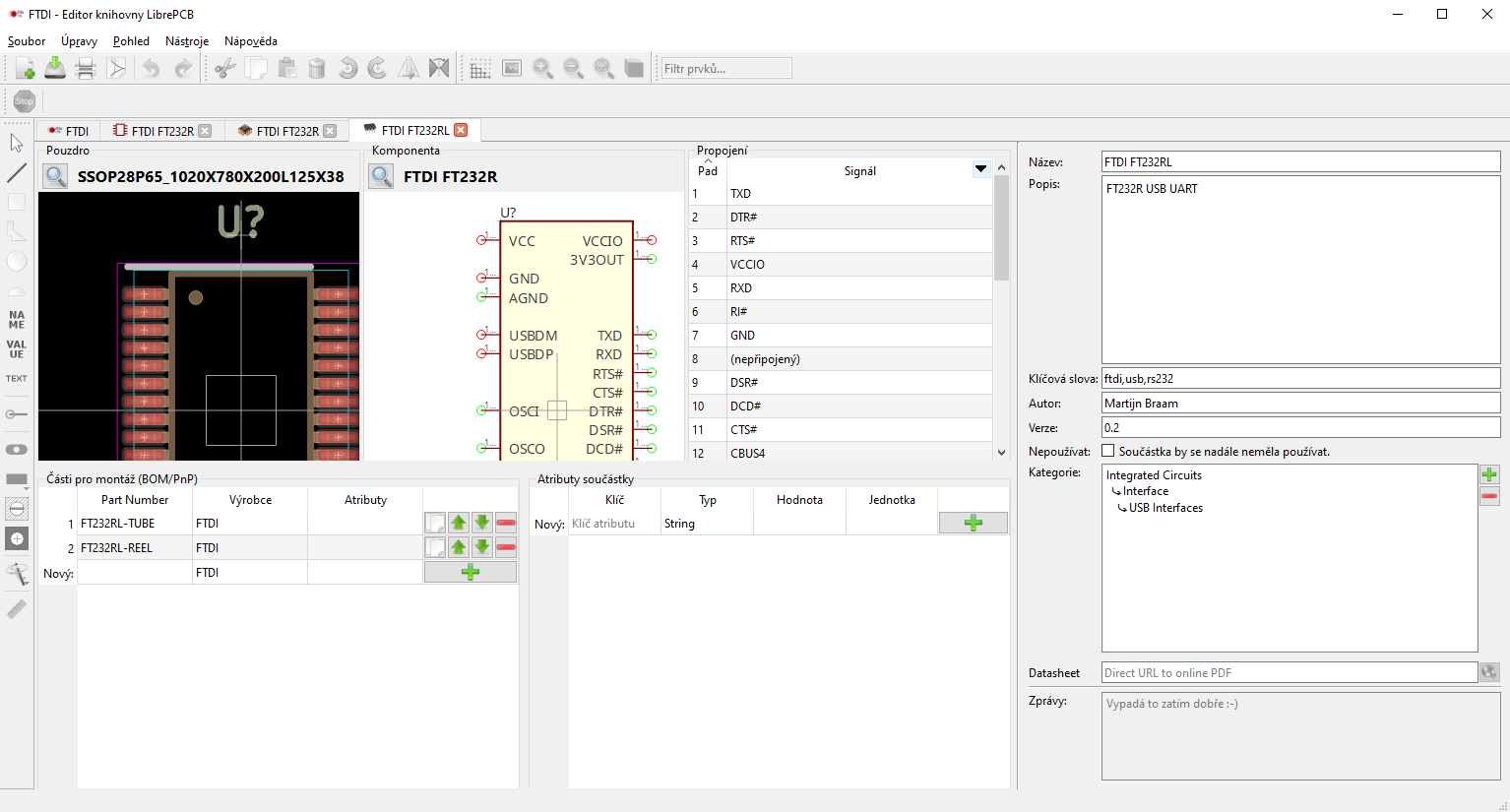 LibrePCB focuses on simplicity and ease of use when managing and creating component libraries. Unlike KiCad and Altium, LibrePCB unifies symbols, footprints, and metadata into a single entity, streamlining the process of defining components. The Library Manager allows users to create and edit components using a guided workflow, reducing complexity for newcomers. LibrePCB also introduces a unique library repository system, enabling users to install libraries directly from online sources rather than manually downloading and importing files. However, the selection of pre-existing libraries in LibrePCB is smaller compared to KiCad and Altium, meaning users may need to create custom components more frequently. An example of open-source GUI for components creation and management in LibrePCB is shown in the following Figure.